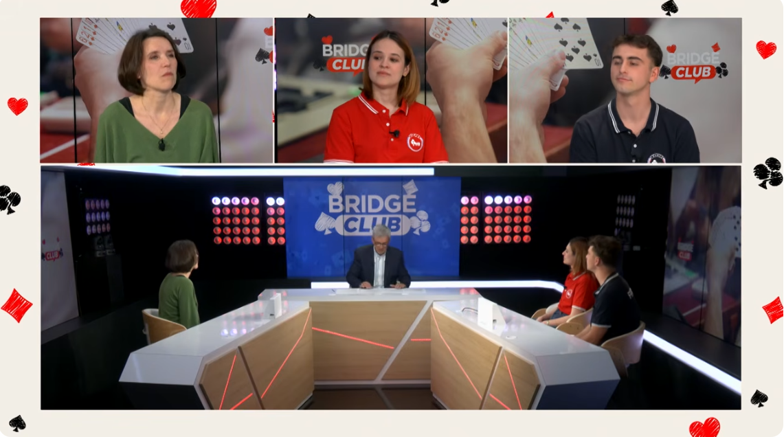 Une émission consacrée au bridge sur la chaîne numérique "Sport en France", et animée par le journaliste très connu Patrick Chêne, est relayée par la FFB. 3 personnages du bridge français réussissent avec talent à promouvoir le bridge.